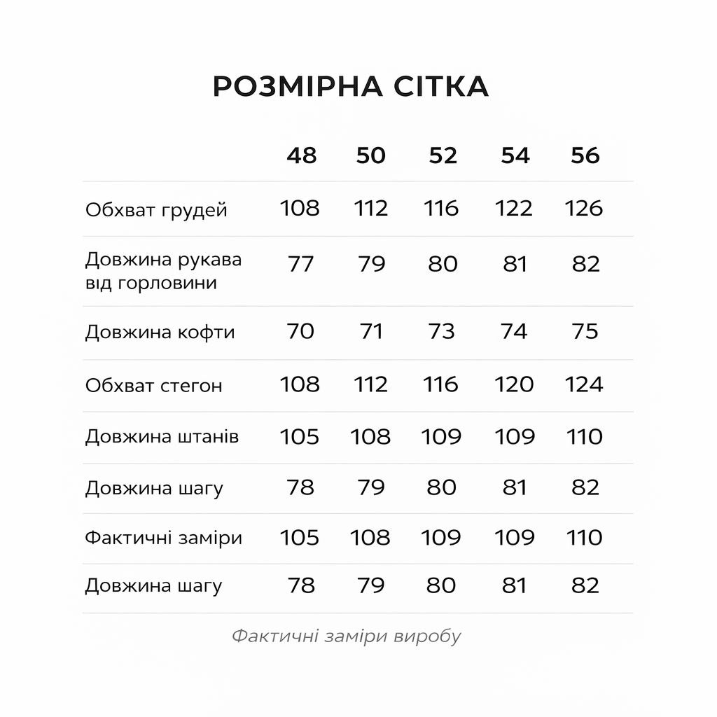 - Розміри: 48,50,52,54,56.